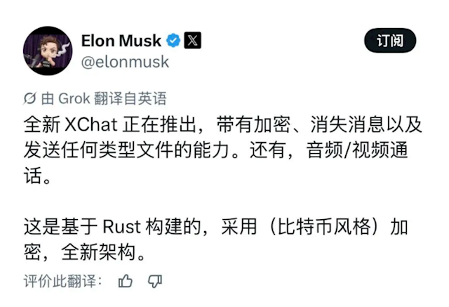 从目前已披露的信息来看,XChat采用Rust语言开发,安装包大小为175.8 MB,支持iOS 16及以上系统。